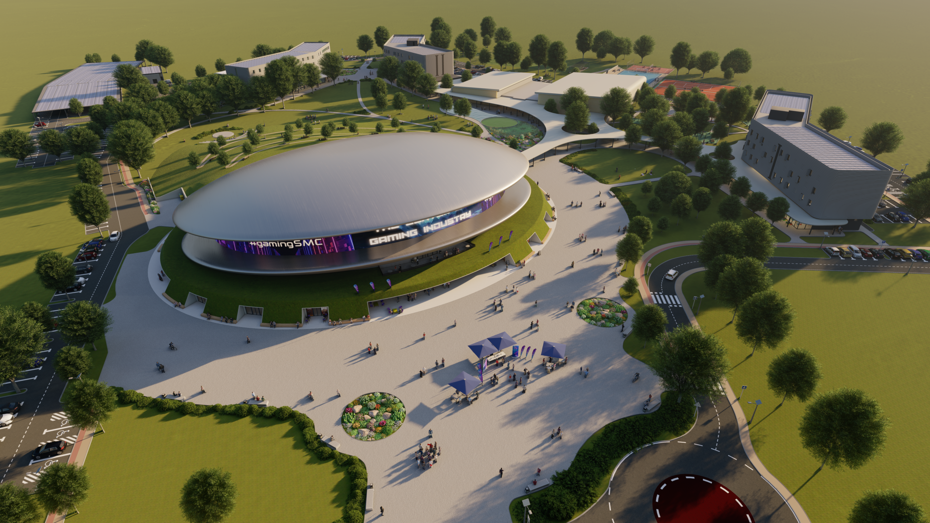 Centar gaming industrije, prvi takav u Europi, uključuje inkubator i akcelerator gaming industrije, infrastrukturu za sveučilišne studijske programe u području gaming industrije te sve pripadajuće studentske i sportske sadržaje, a projekt započinje upravo izgradnjom infrastrukture i uspostavom studijskih programa, studentskog doma sa 201 ležajem kao i niza sportskih sadržaja poput bazena, sportske dvorane, ali i sportskih igrališta na otvorenom, energane i prometnice. Župan Sisačko-moslavačke županije Ivan Celjak izrazio je zadovoljstvo zbog ovog značajnog ulaganja u županiju: „Realizacija gaming kampusa je iznimno važan projekt kako za Novsku, tako i za Sisačko-moslavačku županiju. Primarno je usvajanje znanja najvažnije, s obzirom da prva faza izgradnje gaming kampusa podrazumijeva upravo izgradnju zgrade fakulteta, studenskog doma te popratnih sportsko rekreacijskih sadržaja. Očekujmo dolazak mladih ljudi, obitelji i tvrtki, koji će razvijati svoje osobne i poslovne kompetencije. Sigurni smo da će u Novskoj pronaći posao te dom, s obzirom da već trenutno djelovanje i uspjesi Poduzetničkog inkubatora PISMO to i nagovještavaju.“