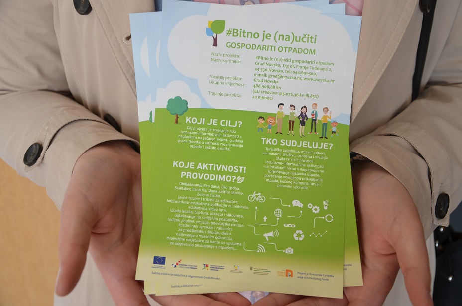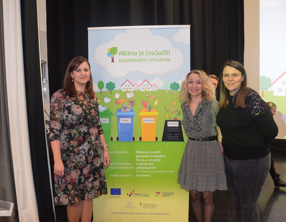 Početna konferencija projekta #Bitno je (na)učiti gospodariti otpadom je održana u petak, 1.ožujka 2019. godine u Kino dvorani Novska. Ukupna vrijednost projekta je 488.908,88 kuna, od čega je 85% ili 415.076,36 kuna financirala Europska unija iz Kohezijskog fonda.