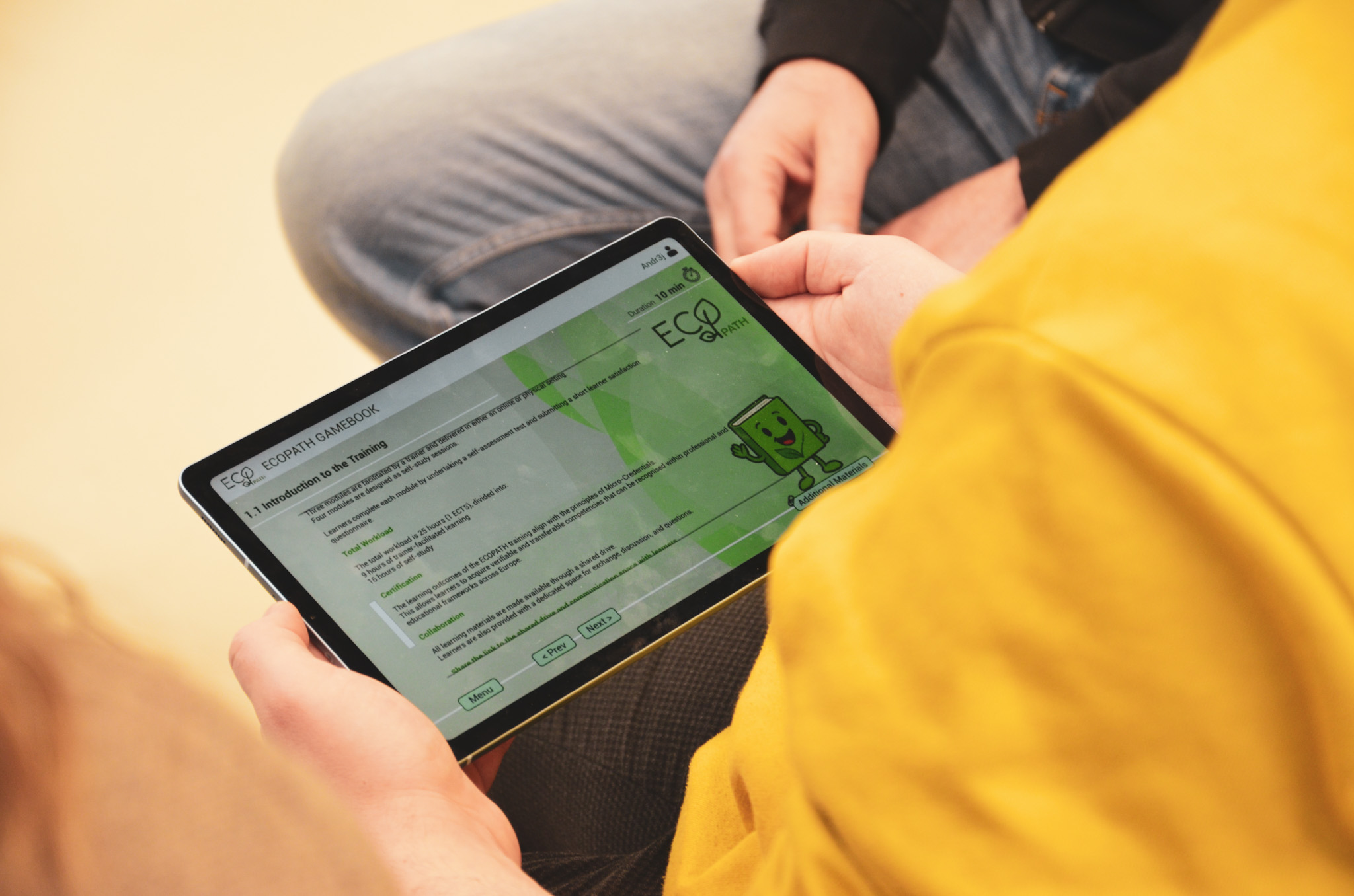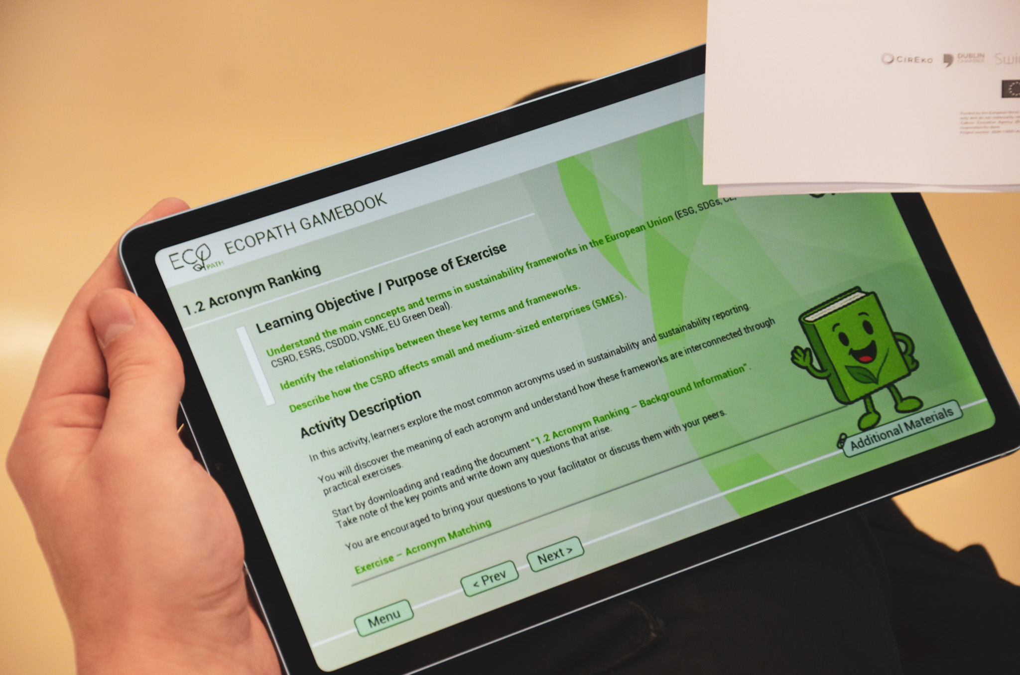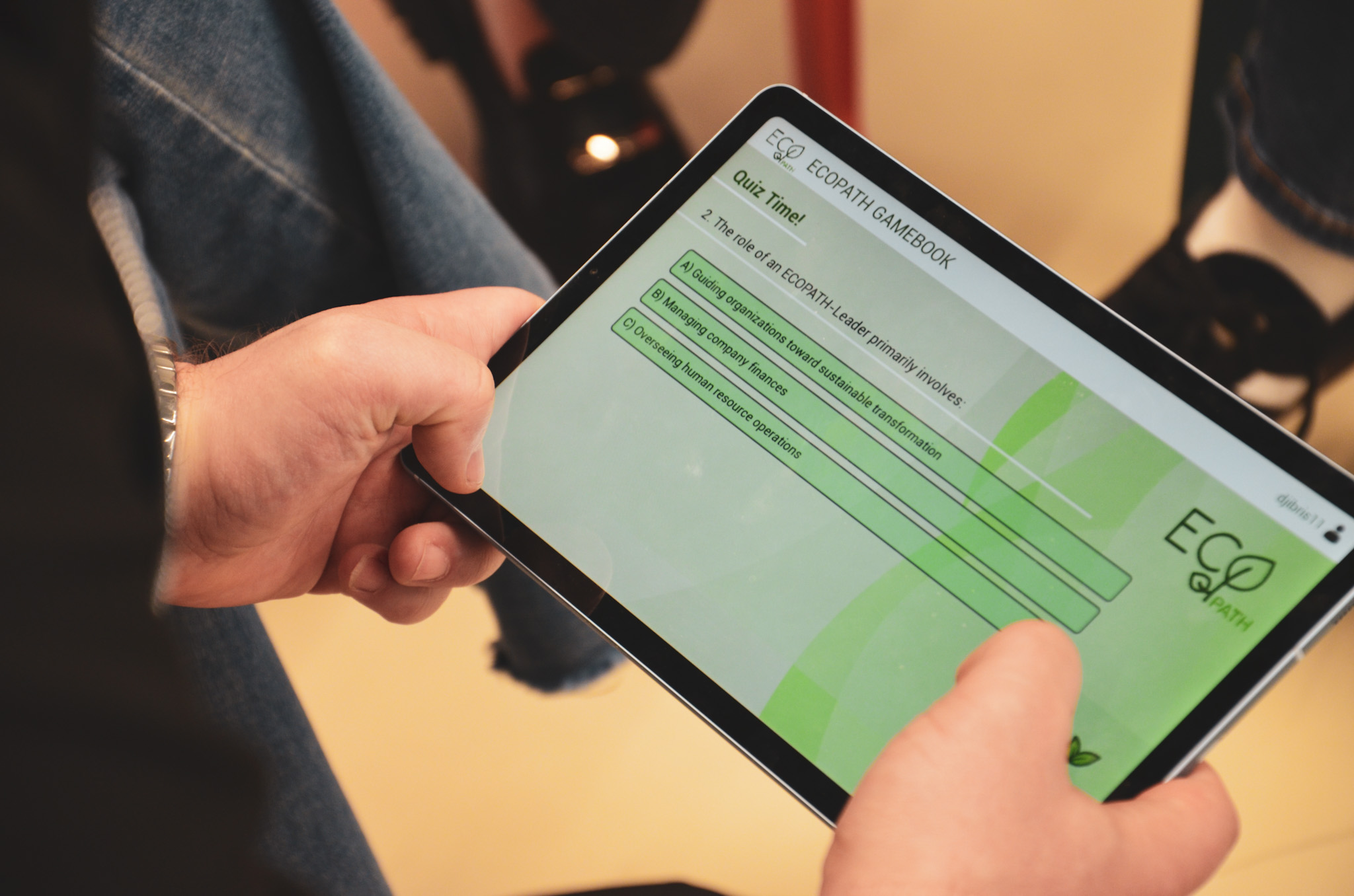 Atmosfera je od samog početka bila iznimno pozitivna, poticajna i suradnička. Sudionici su s velikim interesom pristupili predstavljanju projekta i Gamebooka, koji predstavlja jedan od ključnih rezultata ECOPATH-a. Posebno oduševljenje izazvala je činjenica da je alat osmišljen tako da ne zahtijeva prethodno stručno znanje – kroz kratke, jasne i praktične „micro-learning“ sadržaje svi su mogli brzo razumjeti osnovne koncepte ESG-a i kružnog gospodarstva.