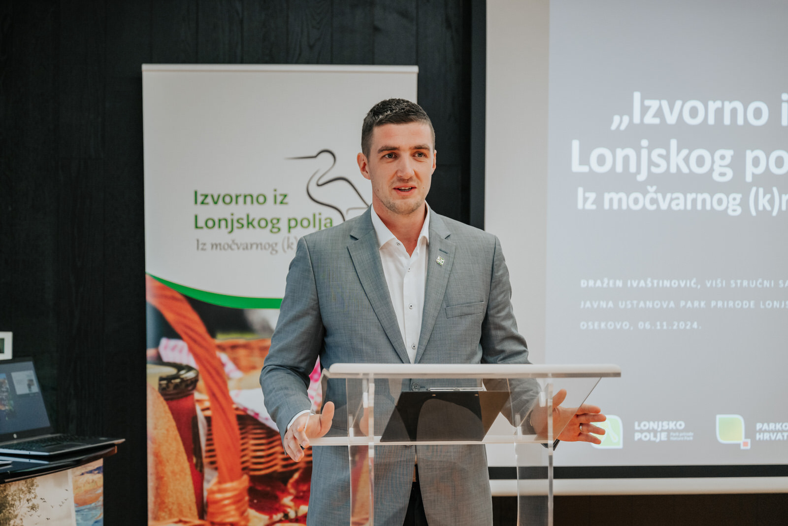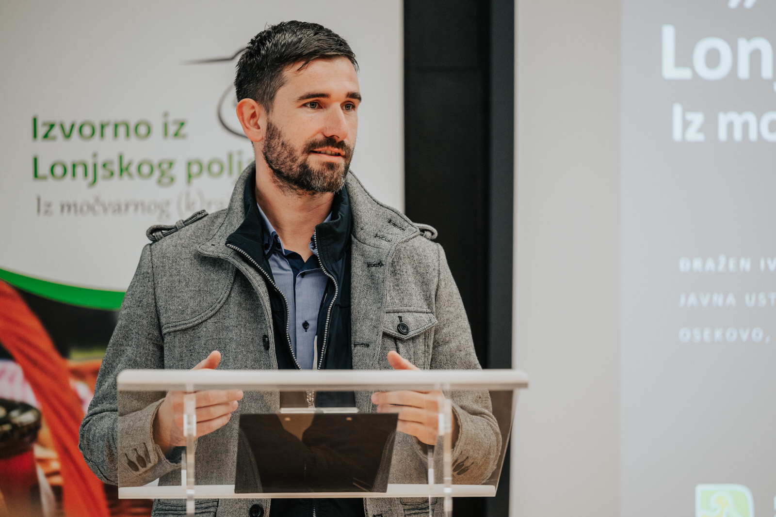 Nazočnima se obratio ravnatelj Parka Domagoj Šejatović iznijevši razloge izrade novog logotipa „Izvorno iz Lonjskog polja“.