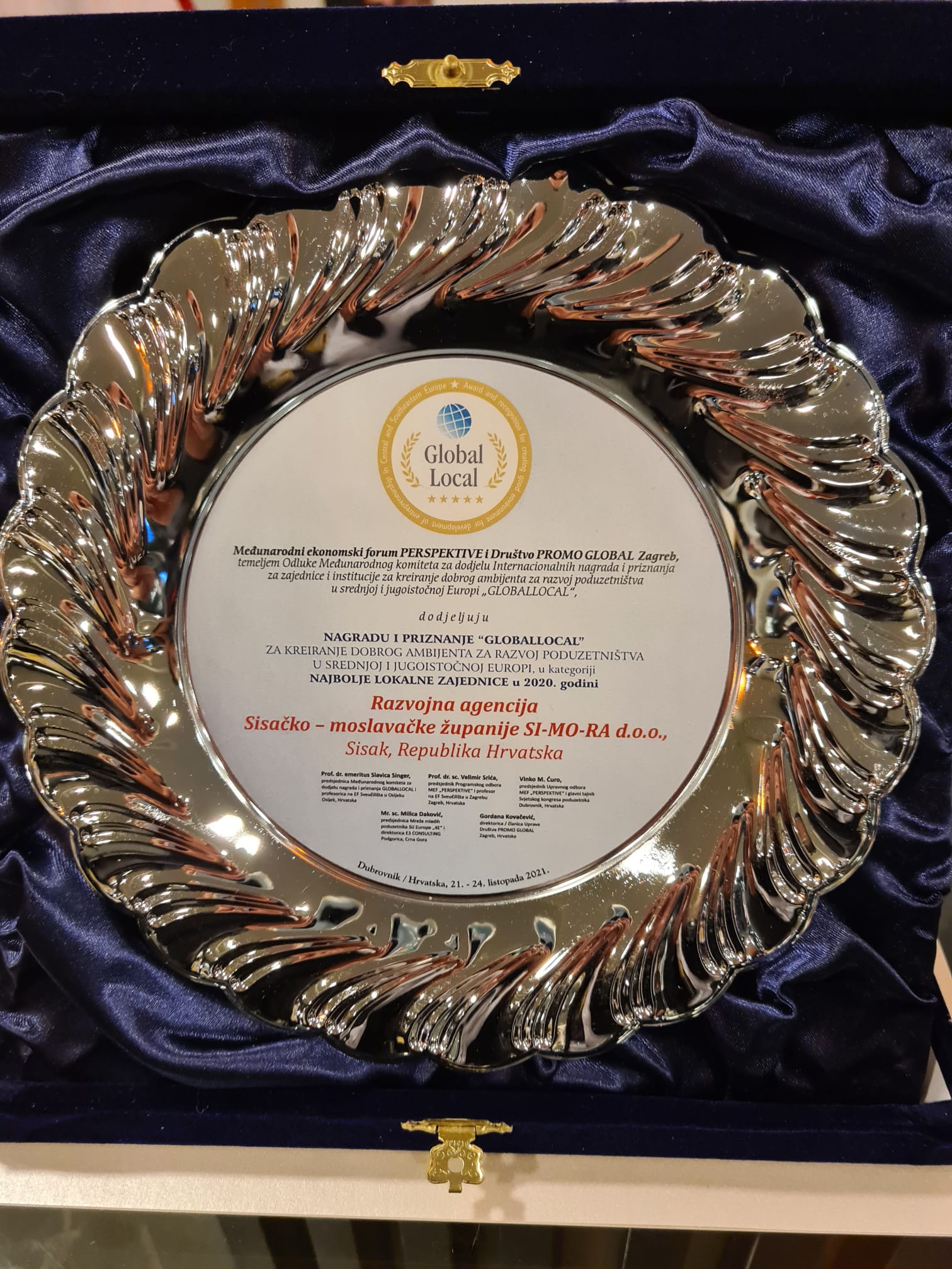 Prestižna nagrada GLOBALLOCAL AWARDS dodjeljuje se za područje srednje i jugoistočne Europe prema odluci neovisnog Međunarodnog komiteta za dodjelu nagrada i priznanja od strane Međunarodnog ekonomskog foruma Perspektive, a uz potporu Svjetskog kongresa poduzetnika. Razvojna agencija Sisačko-moslavačke županije SIMORA nagrađena je tako za kreiranje dobrog ambijenta za razvoj poduzetništva u ovom dijelu Europe u 2020. godini.