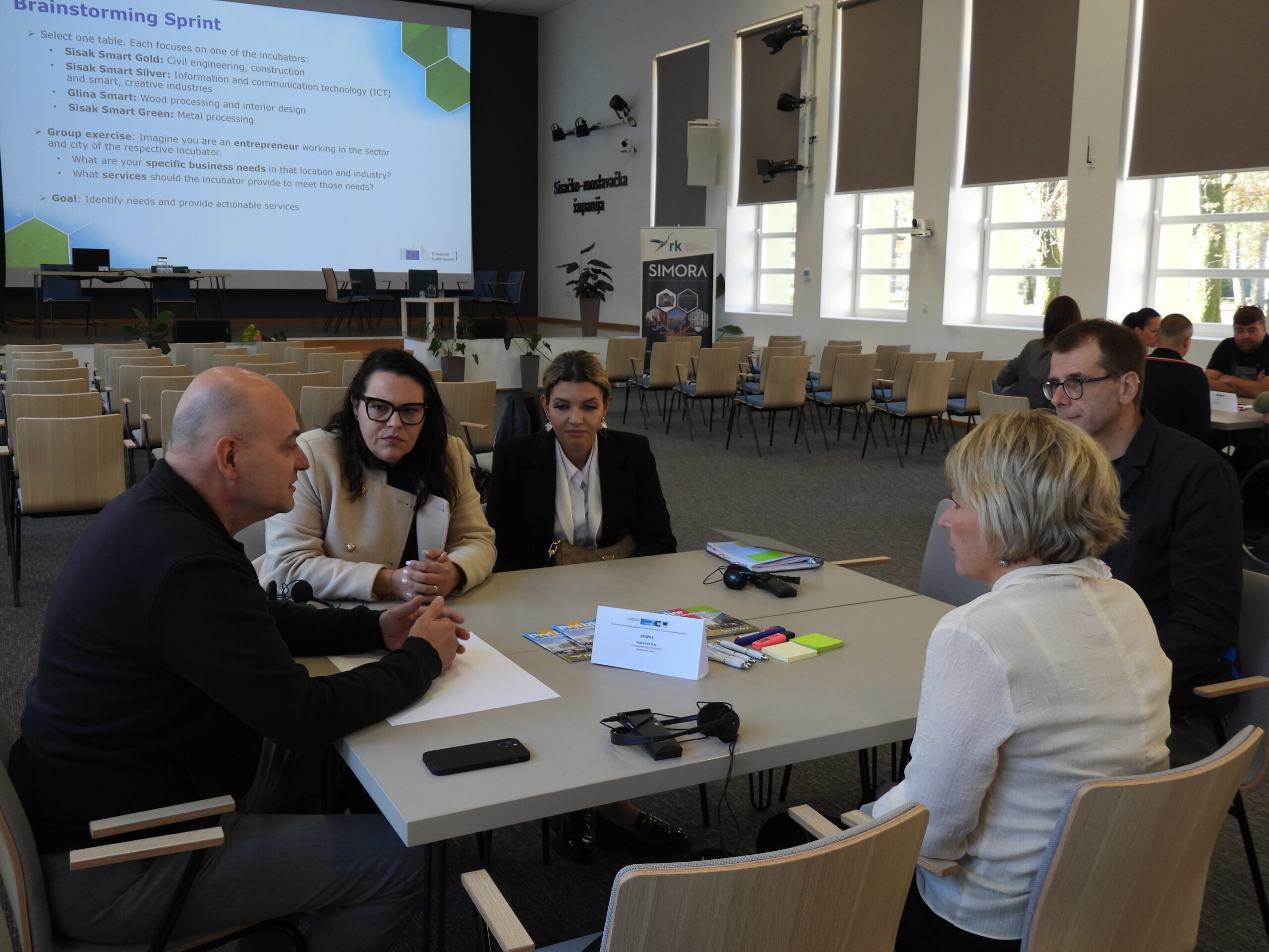 Radionica je bila usmjerena na uspostavu novih poduzetničkih inkubatora u Sisku i Glini – Sisak Smart Gold, Sisak Smart Silver, Sisak Smart Green i Glina Smart. Sudionici, podijeljeni u četiri radne skupine, kroz konstruktivnu raspravu istraživali su kako inkubatori mogu najbolje podržati lokalne industrije, poduzetništvo i zapošljavanje.