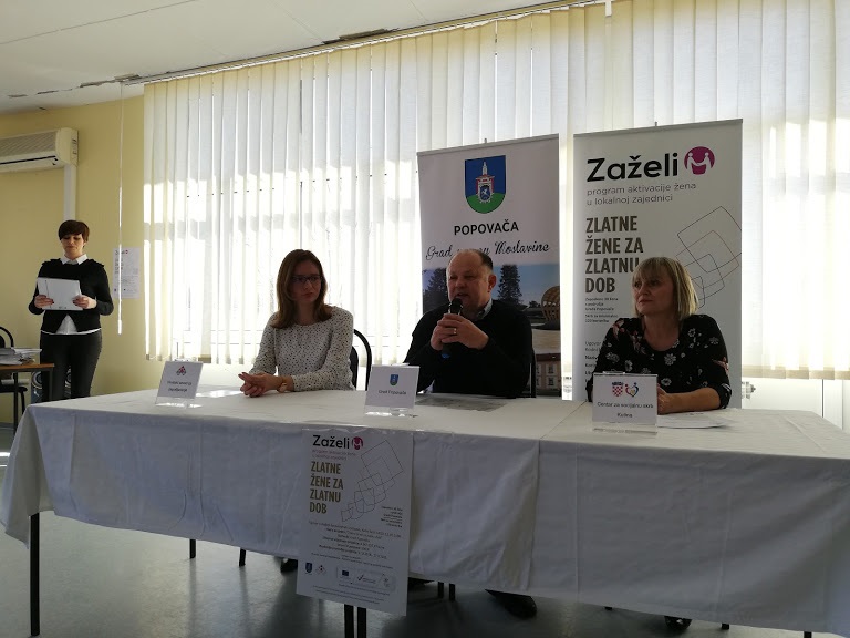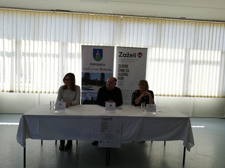 U četvrtak, 28. veljače 2019. godine u Popovači je održana početna konferencija projekta “Zlatne žene za zlatnu dob”. Kroz projekt je zaposleno 30 žena pripadnica ranjivih skupina koje pružaju potporu i podršku za 135 krajnjih korisnika.