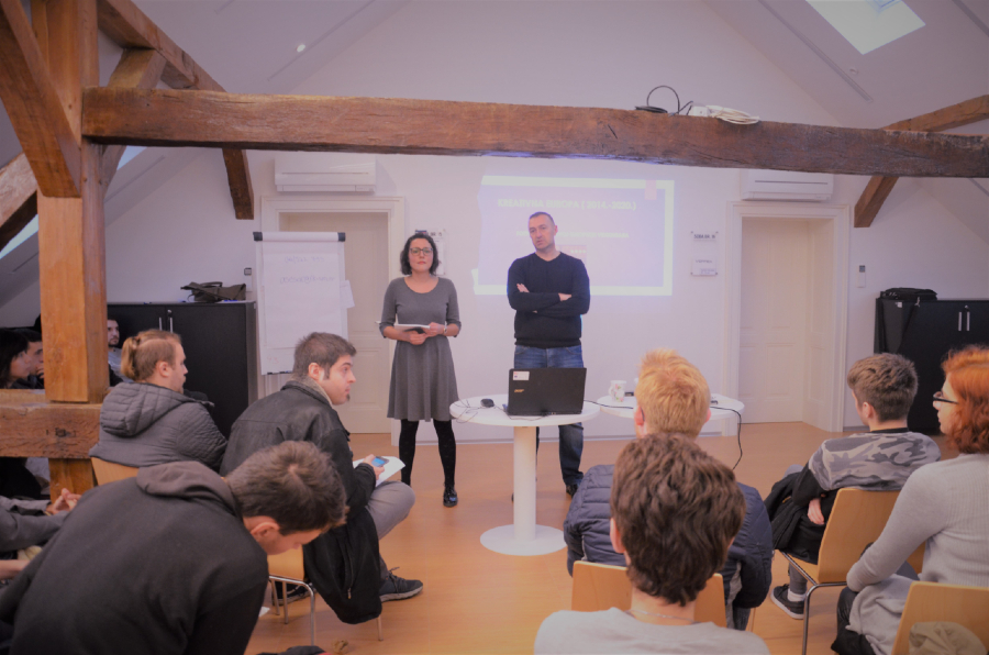 Upravo zato u utorak, 26.11.2019. godine polaznicima smo priredili bonus. Predstavili smo im novi natječaj Kreativna Europa, Potprogram Media, Potpora za razvoj europskih videoigara u sklopu kojeg mogu ostvariti novčanu potporu za inovativne i kreativne video igre. Nakon toga nas je posjetio Tomislav Pongrac, kreativni direktor Gamepiresa koji im je dao savjete kako što uspješnije sudjelovati na ovom natječaju. Osim toga, polaznici su mogli čuti kako je izgledao njegov put do uspjeha. Hvala Tomislavu Pongracu na inspirativnoj priči.