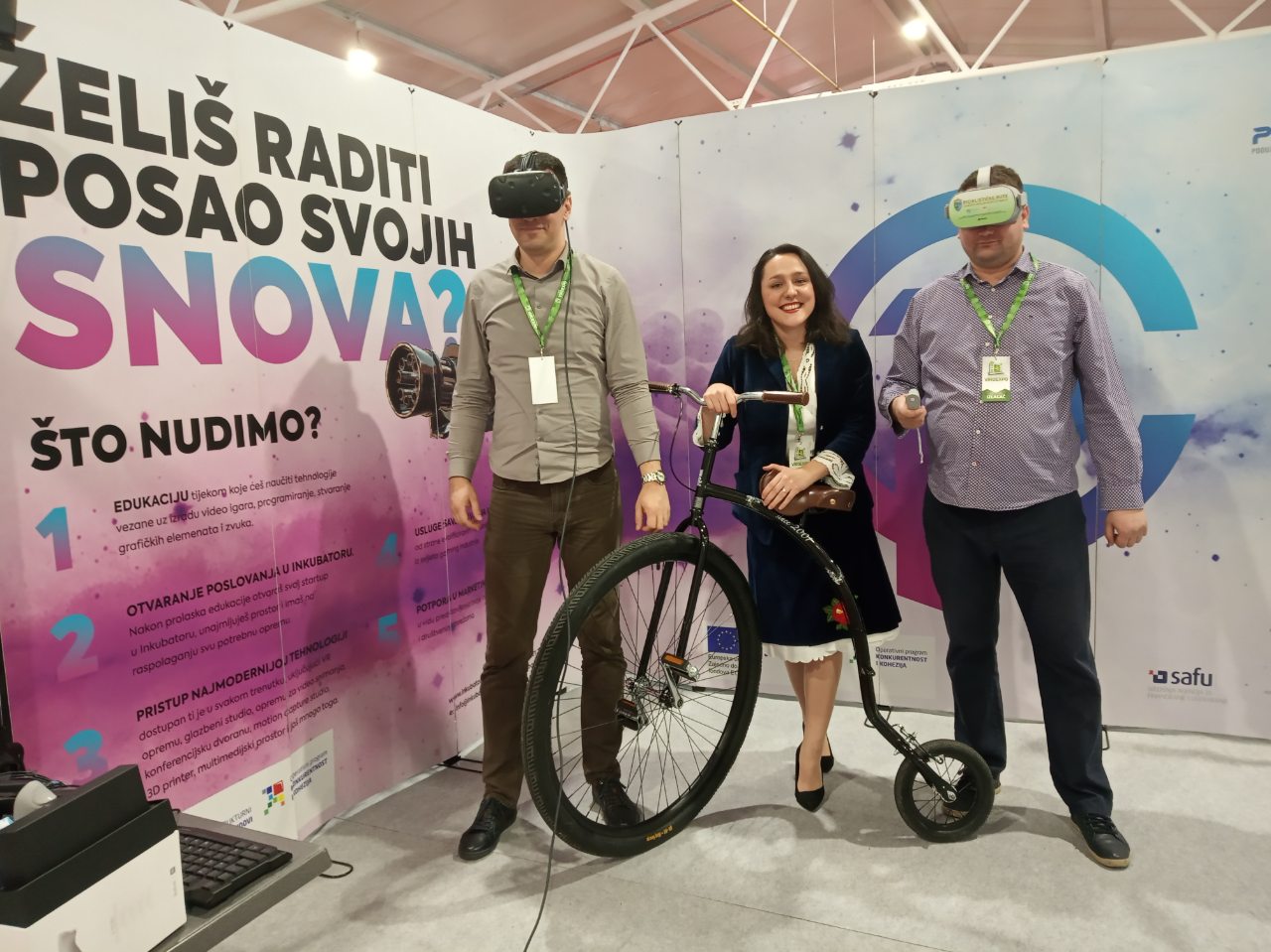 Ono što je privuklo pažnju brojnih posjetitelja bila je replika starinskog bicikla iz Novske, koji je zapravo mini verzija onih koji se nalaze u 5 gradova Sisačko-moslavačke županije. Naime, pet gradova u županiji krase replike starih bicikala visoke pet metara koji su postali i prava turistička atrakcija. Posjetitelji su putem VR naočala mogli vidjeti biciklističke rute naše županije, ali i odličnu edukativnu igricu o razvrstavanju otpada, koja je rađena za Ministarstvo zaštite okoliša i energetike, a nastala u radionici PISMO.