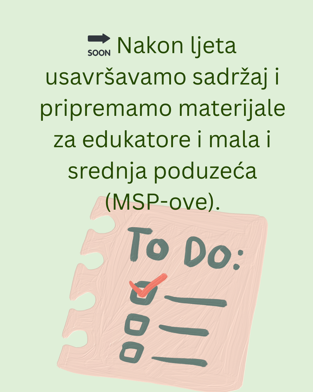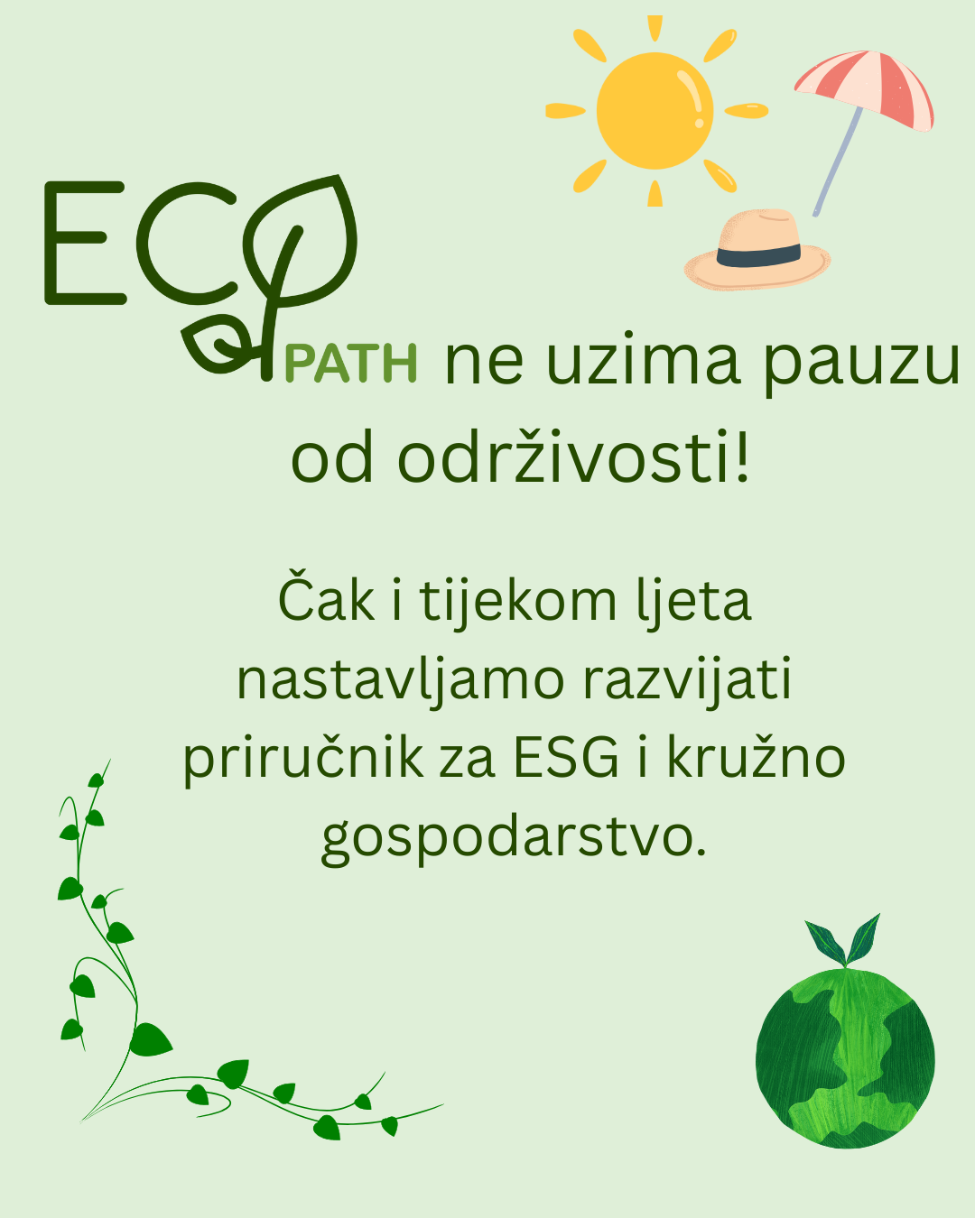 🌞 Ni preko ljeta ne mirujemo! Projektni tim #ErasmusPlus projekta #ECOPATH neumorno radi na pripremi inovativnog Gamebooka – cjelovitog interaktivnog priručnika koji će malim i srednjim poduzetnicima, startupovima i edukatorima diljem Europe pomoći da usvoje ESG načela i principe kružnog gospodarstva ♻️