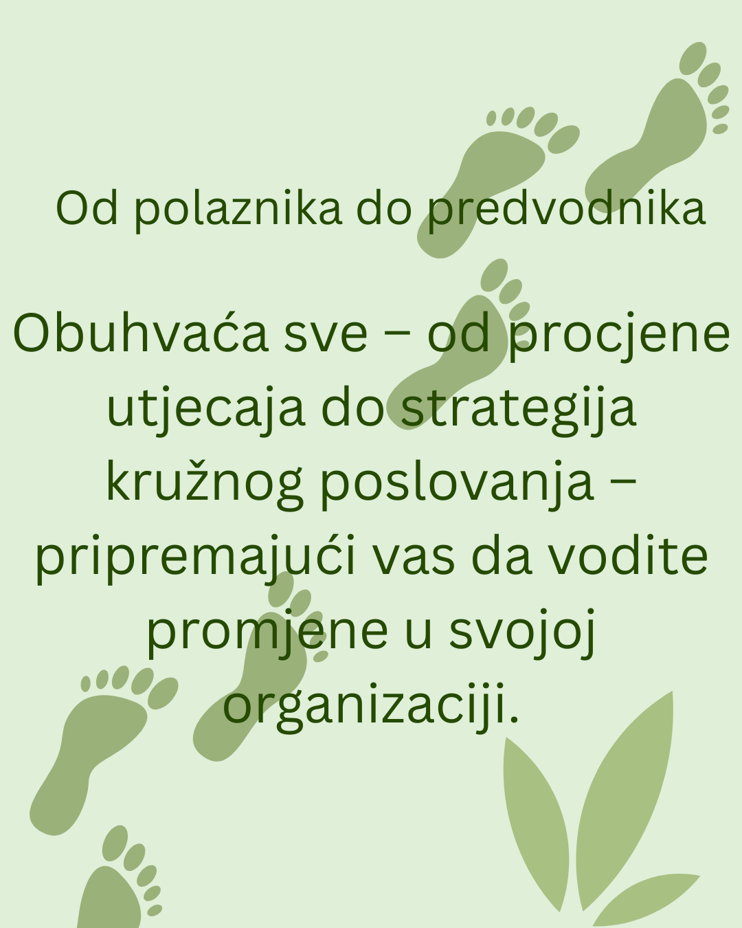 🔍 Cilj? Osnažiti znanjem i alatima za održivu transformaciju i vođenje promjena u poslovanjima!